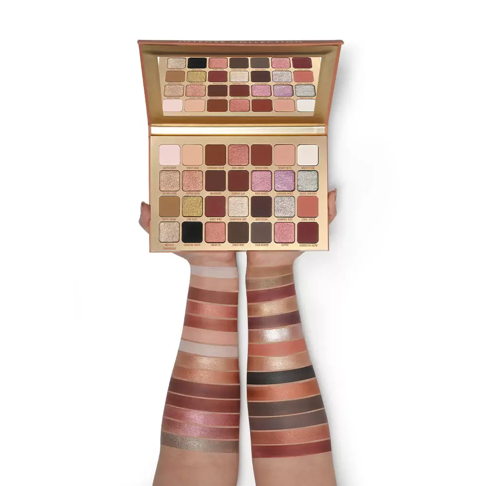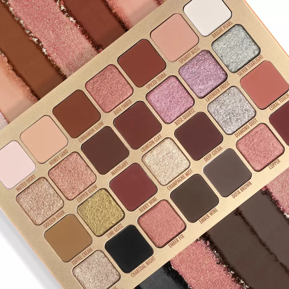 این پالت شامل طیف رنگی گرم، سرد و خنثی است که برای انواع رنگ پوست مناسب است. از رنگ‌های نود و طبیعی گرفته تا رنگ‌های اسموکی، بنفش، طلایی و مسی در کنار هم قرار گرفته‌اند تا بتوانید آرایش چشم خود را با توجه به مناسبت، لباس یا حال‌وهوای روزانه تان تنظیم کنید.